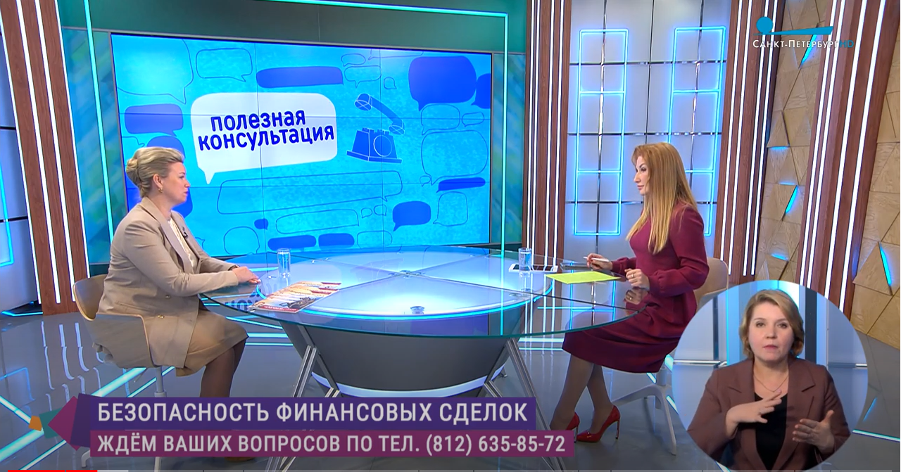 В эфир телеканала «Санкт-Петербург» вышел новый выпуск программы «Полезная консультация», посвященный безопасности финансовых сделок. Приглашенным экспертом выпуск стала президент Нотариальной палаты Санкт-Петербурга Мария Викторовна Терехова.