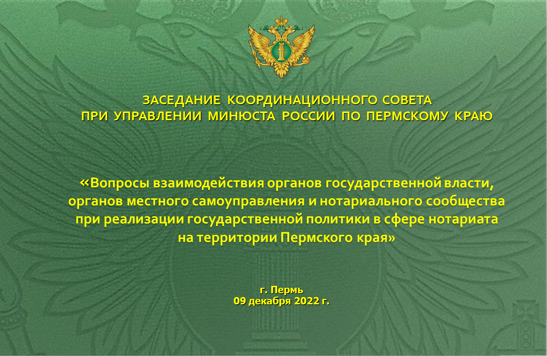 В Прикамье состоялось заседание Координационного совета при Управлении Минюста России по Пермскому краю. Мероприятие было организована на базе Нотариальной палаты Пермского края.