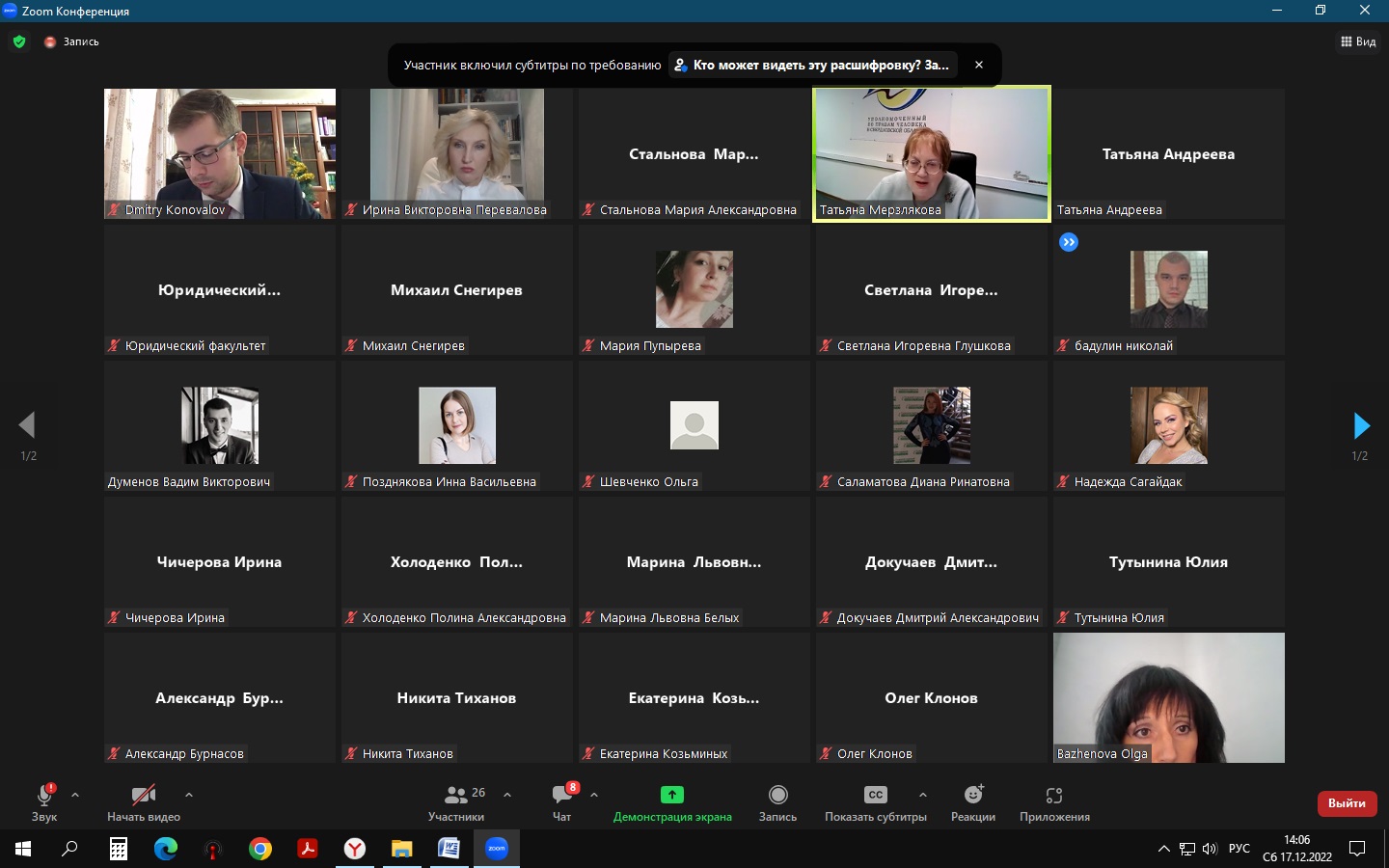 В онлайн-формате прошел круглый стол «Права человека и современные технологии», организованный Московским государственным университетом им М.В. Ломоносова и Гуманитарным университетом города Екатеринбурга при поддержке Уполномоченного по права человека в Свердловской области. В мероприятии приняли участие магистранты, аспиранты, преподаватели МГУ и Гуманитарного университета, представители нотариата и адвокатуры, практикующие юристы России и стран СНГ.