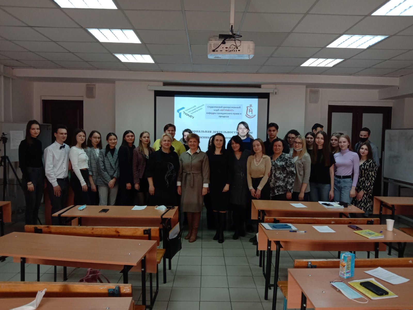 На кафедре гражданско-правовых дисциплин Института государства и права Тюменского государственного университета прошло заседание студенческого дискуссионного клуба «АРГУМЕНТ». В работе заседания приняли участие представители Тюменской областной нотариальной палаты в лице президента Елены Никифоровой и члена правления Анны Смахтиной. Тема для дискуссии со студентами и преподавателями была выбрана крайне актуальная и интересная – нотариальная деятельность в сфере наследственных отношений.